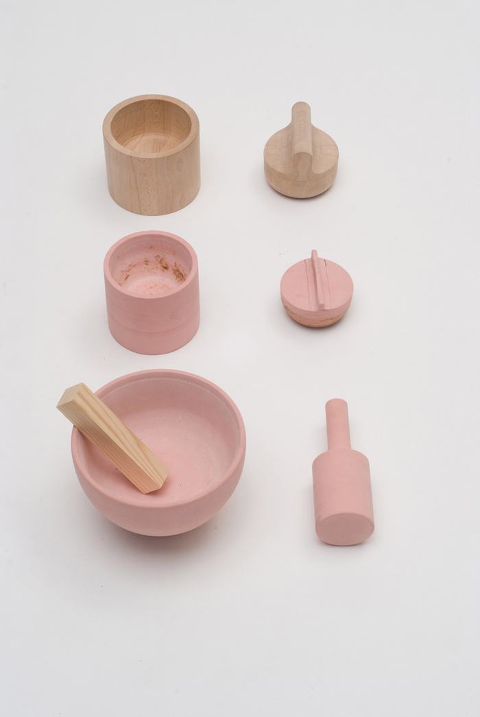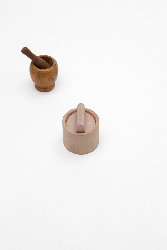 Famille d’objets élaborée en lien avec le territoire du Jura Partenariat avec le Sy.nttac, syndicat de tourneurs et tabletiers du Jura Hêtre Réalisé avec Raphaël Daufresne © Véronique Huyghe